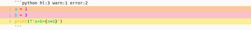 하이라이트가 필요한 코드 범위를 hl: 기호 뒤에 명시한다.