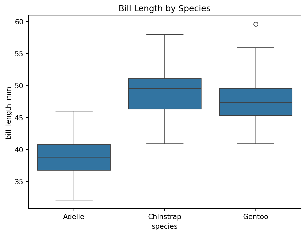 plt.title("Bill Length by Species" )