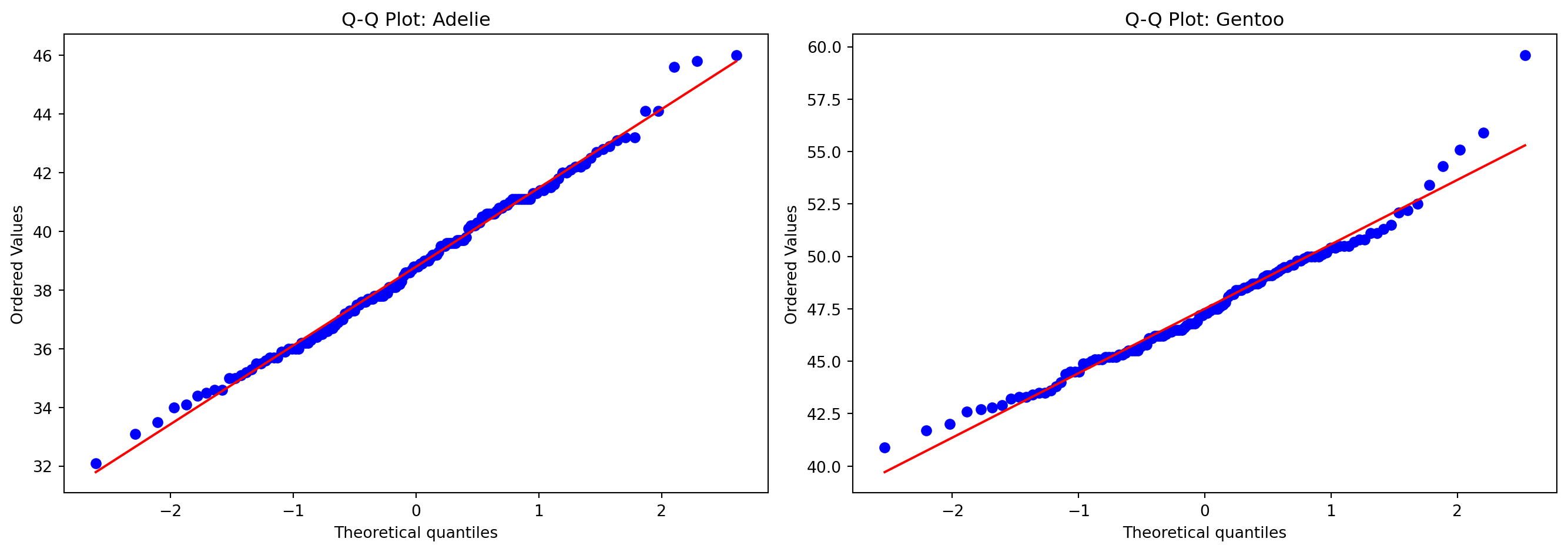 Adelie: p = 0.7166 (정규)